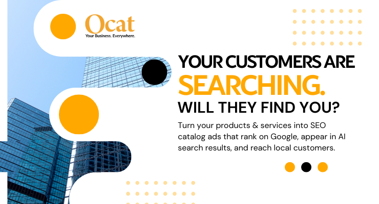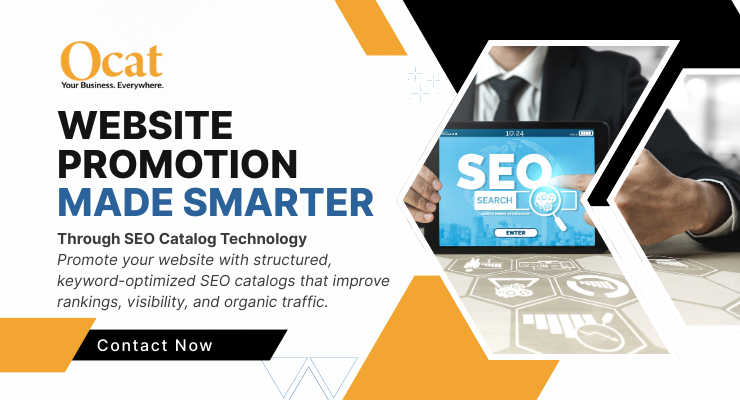 Ocat SEO Catalog is a website promotion service built around SEO Catalog Ads — search-optimized promotional advertisements designed to showcase your business across digital channels. These ads combine structured content, banner creatives, and landing pages to improve discoverability and drive visitors to your main website.